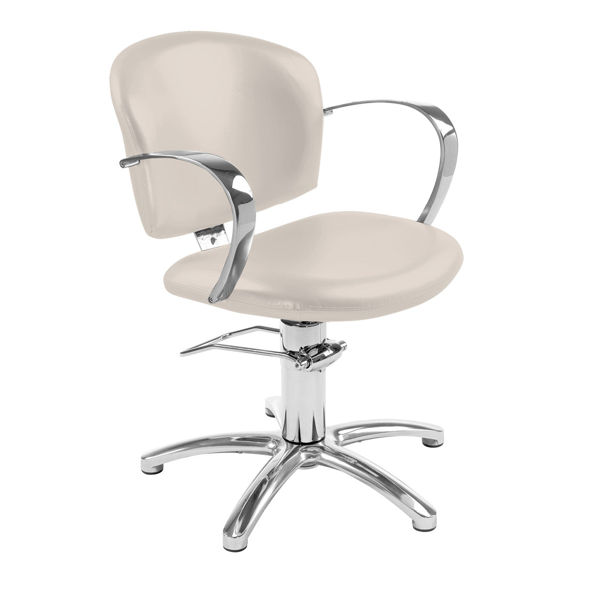 Shell on kääntyvä kampaamotuoli, jossa on kiillotetut alumiinikäsinojat. Rakenne on valmistettu monikerroksisesta puusta ja vaahtopolyuretaanista, mikä takaa kestävyyden ja käyttömukavuuden. Saatavana useilla eri jaloilla.