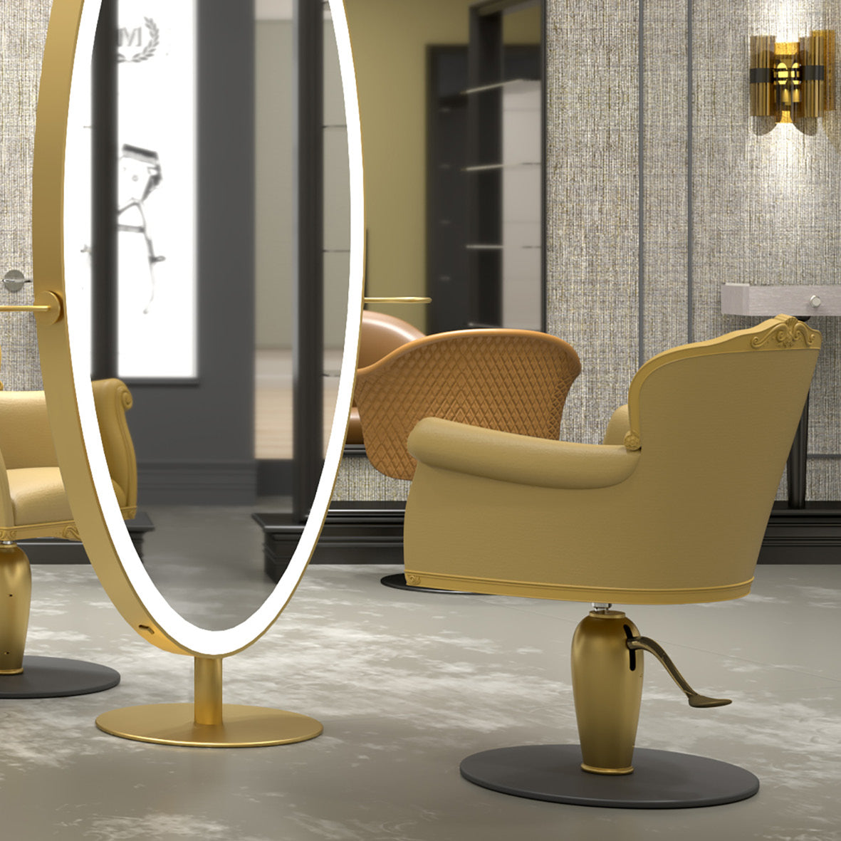 Musta-kultainen tuolinjalka, joka sopii Maletin kampaamotuoleihin. Pyöristettyjen linjojen design rikkoo perinteitä ja tekee jalasta upean sisustuselementin.