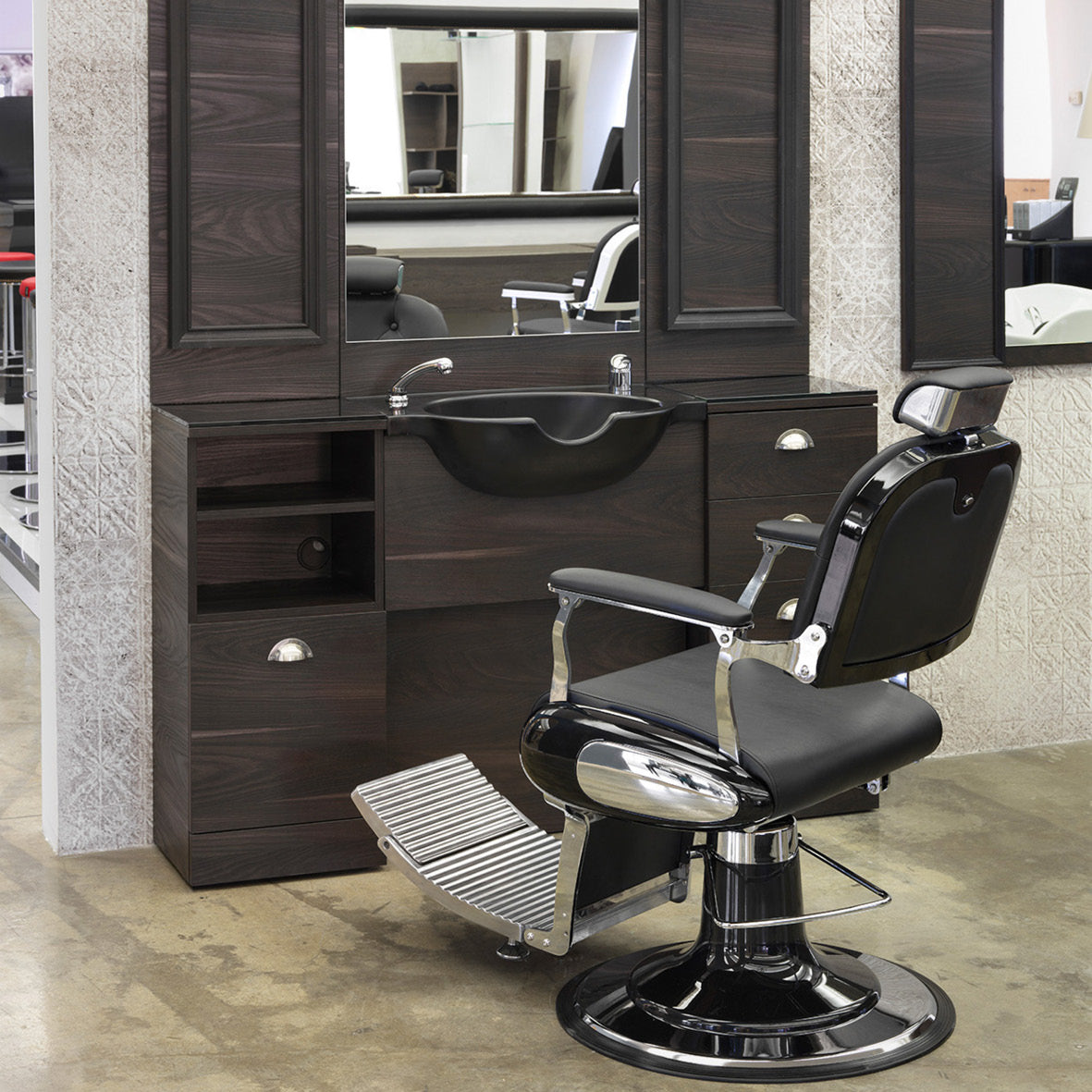 Easy Barber Wash kunnioittaa parturiperinteen ajattomuutta ja vintage-henkeä yhdistäen sen kansainväliseen tyyliin. Parturin työpisteelle tarkoitetun pesupaikan rakenne yhdistää kontrastisia elementtejä, luoden täydellisen tasapainon retro-yksityiskohtien ja modernin muotoilun välillä.